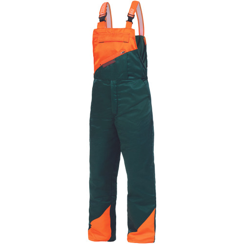 • álítható hossz • záródás muanyag csatttal • mellzseb zipzárral • záródás oldalról zipzárral és gombokkal • hátsó zseb tépozáras hajtókával • zseb collstocknak • belso vágás ellen véso réteg elöl a deréktól a bokáig
