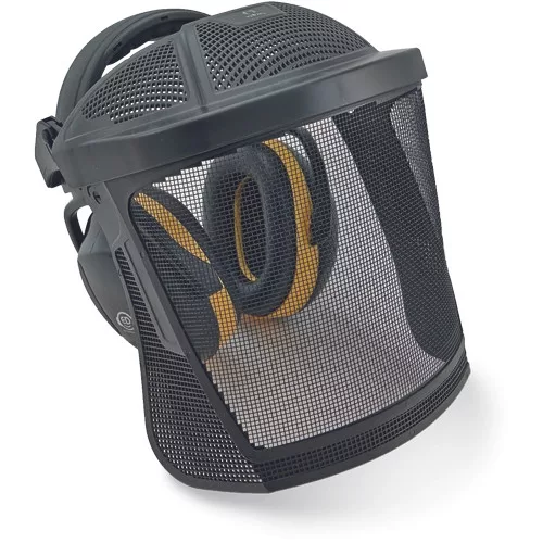 Hellberg headset combination with stainless steel wire mesh face shield and ED 2H Ear Defender earmuffs; maximum comfort and protection for users who do not need head protection at the same time; meet the EN 352-1: 2002 standard