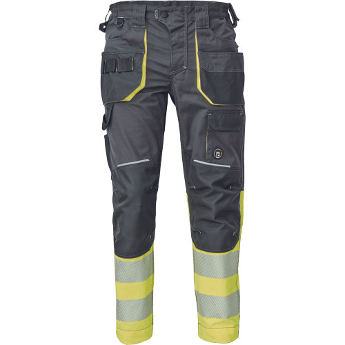 • Férfi jólláthatósági nadrág rugalmas derékkal és többfunkciós zsebekkel, 7 cm-es szegmentált fényvisszavető csíkokkal. Megerősített térdrész és térdzseb Oxford 600D anyagból térdvédő behelyezéséhez. Ellenálló hármas fedőző varrás az üleprészen és a meghosszabbítható szárakon.