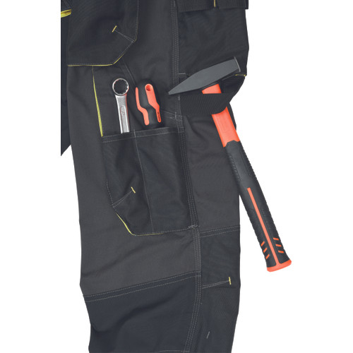 • férfi nadrág rugalmas derékkal és többfunkciós zsebekkel, 7 cm-es szegmentált fényvisszavető csíkokkal • megerősített térdrész és térdzseb Oxford 600D anyagból térdvédő behelyezéséhez • ellenálló hármas fedőző varrás az üleprészen és a meghosszabítható szárakon