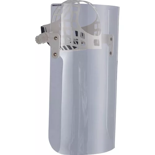 » arcvédő 330 x 290 mm víztiszta 2 mm vastag poli(metil-met) akrilát látómezővel, fejkerettel » az arc és a szem védelmére alkalmas kis méretű, alacsony energiájú (max» 0,56J) repülő szemcsék ellen » használható korrekciós szemüveg felett viselve is » EN 166