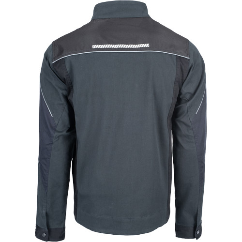 • men's working jacket with zip fastening • made of stretch fabric • 2 side pockets, 2 zipped chest pockets • reinforcement of the stressed parts • reflective piping and printed details