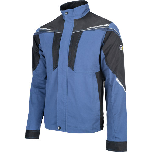 • men's working jacket with zip fastening • made of stretch fabric • 2 side pockets, 2 zipped chest pockets • reinforcement of the stressed parts • reflective piping and printed details