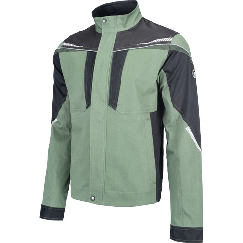 • men's working jacket with zip fastening • made of stretch fabric • 2 side pockets, 2 zipped chest pockets • reinforcement of the stressed parts • reflective piping and printed details