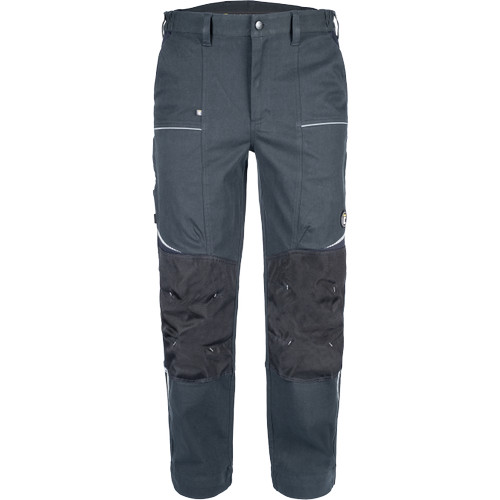• men's working pants made of light stretch fabric • elastic waistband with belt loops • 2 front pockets, 2 back pockets • 2 zipped thigh mesh ventilating pockets • 1 right side multifunctional pocket • reflective piping and printed details • legs extendable by 5 cm