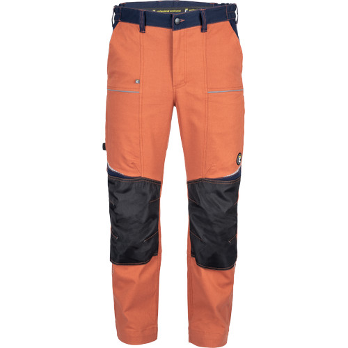 • men's working pants made of light stretch fabric • elastic waistband with belt loops • 2 front pockets, 2 back pockets • 2 zipped thigh mesh ventilating pockets • 1 right side multifunctional pocket • reflective piping and printed details • legs extendable by 5 cm
