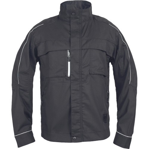 • modern szabású munkakabát formázott ujjvarrással • bővített hátrész, megerősítés a könyökrészen, cipzárralzáródó kialakítás patentos hajtókával • 2 zsebfedős mellzseb, cipzáras Napóleon zseb jobb oldalon • 2 belső zseb • patenttal szűkíthető mandzsetták • fényvisszavető részletek