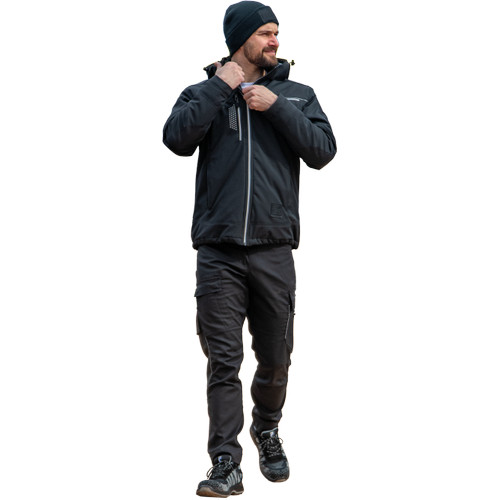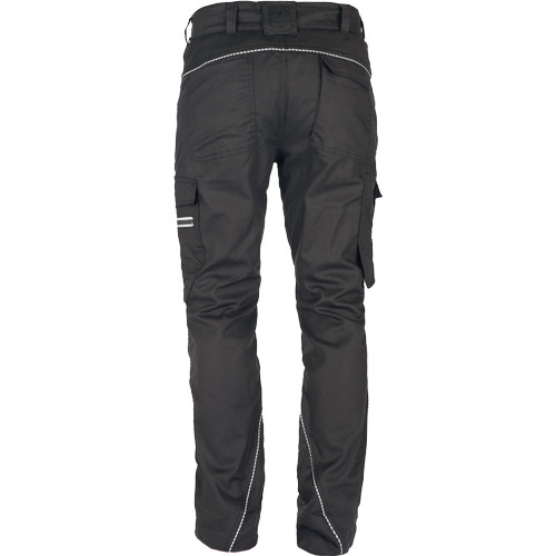 • modern szabású munkanadrág formázott oldalvarrásokkal • rugalmas derékpánt, megerősített térdrész, rugalmas betétek hátul és az üleprészen, 2 D-gyűrű (nikkelmentes) a derékpánton • 2 első zsebbel, 2 zsebfedős oldalzsebbel, a bal száron cipzáras zsebbel (reflex cipzár), többfunkciós zsebek szerszámoknak, 2 farzseb, jobb oldalon zsebfedős, tépőzáras záródással • fényvisszavető részletekkel