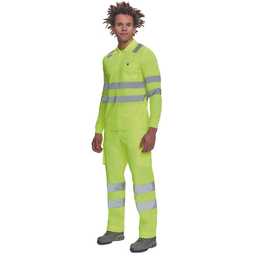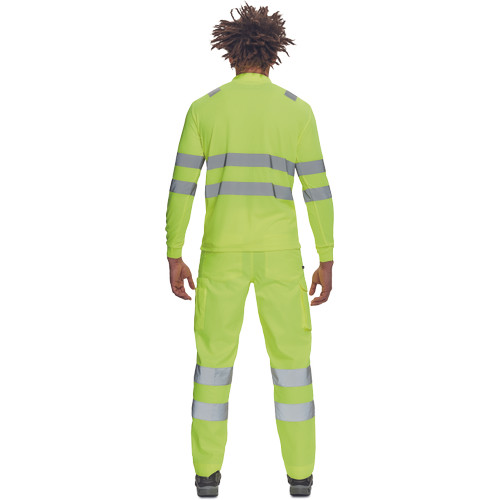 • Hi-Vis hosszú ujjú póló 5 cm széles fényvisszavető csíkokkal • 3 gombbal záródó nyakkivágás • rugalmas mandzsetta • 1 mellzseb