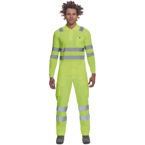 • Hi-Vis hosszú ujjú póló 5 cm széles fényvisszavető csíkokkal • 3 gombbal záródó nyakkivágás • rugalmas mandzsetta • 1 mellzseb