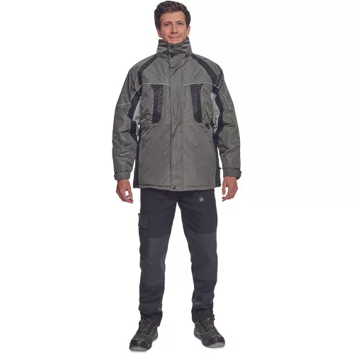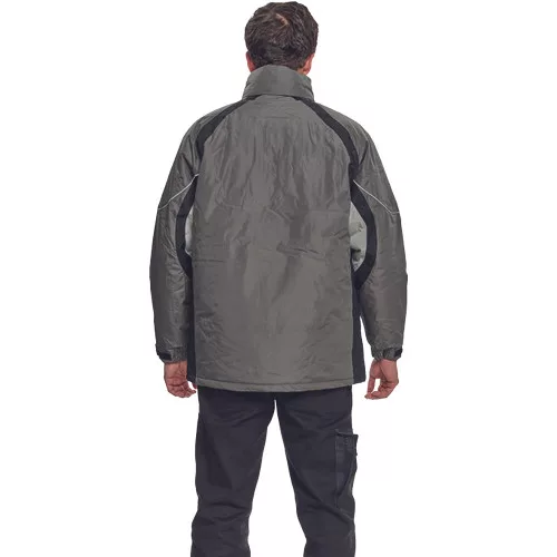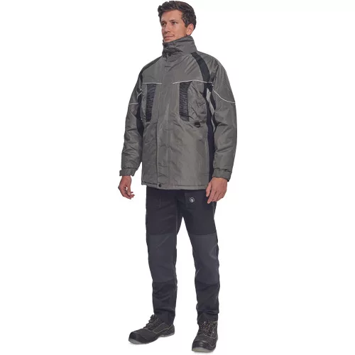 • bélelt, vízálló kabát gallérba hajtott kapucnival • külső szövet kopásállóságot növelő kezeléssel • húzózsinórral szűkíthető alsó szegély • fényvisszavető részletek