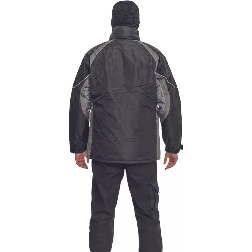 • bélelt, vízálló kabát gallérba hajtott kapucnival • külső szövet kopásállóságot növelő kezeléssel • húzózsinórral szűkíthető alsó szegély • fényvisszavető részletek