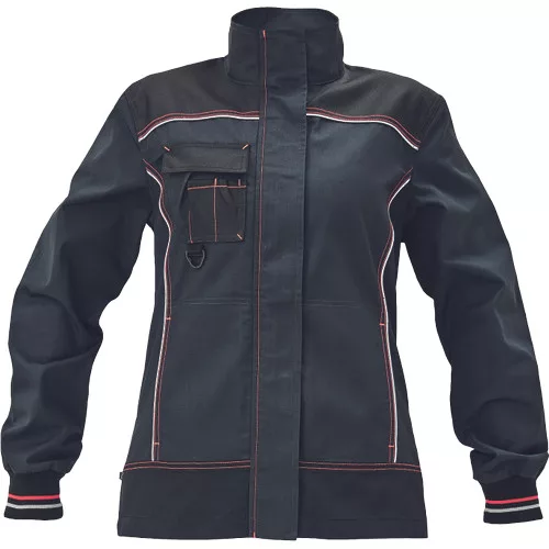 • női dzseki álló gallérral • modern mintázat • 2 nagyméretű oldalsó zseb és 1 multifunkciós mellényzseb • D-gyűrű • megerősített vállrész • rugalmas mandzsetták