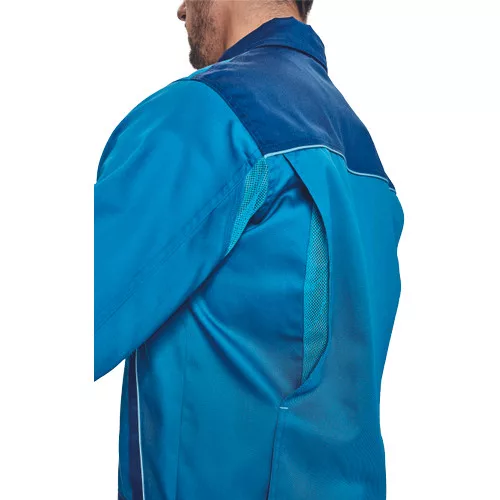 • férfi munka dzseki pamut-PES kevertszálas anyagból • dekoratív paszpol kontrasztos színekben • jó szellőzés a hálós betéteknek köszönhetően • fedett cipzár és zsebek • 2 oldalzseb • 1 mellzseb, benne rejtett D-gyűrűvel • ipari mosással tisztítható
