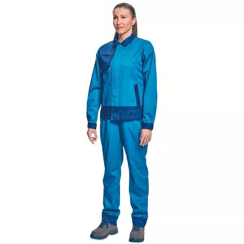 • női munkakabát pamut-PES kevertszálas anyagból • nőies szabás • dekoratív paszpol kontrasztos színekben • hálós betétek • fedett cipzár és zsebek • 2 oldalzseb • 1 mellzseb, benne rejtett D-gyűrűvel • ipari mosásra alkalmas • lehetőség az azonosító chip beillesztésére