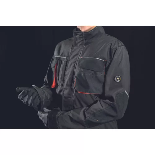 • férfi dzseki multifunkciós zsebekkel • D-gyűrű • Oxford erősítés a könyökrészen • biztonságos telefonzseb • fényvisszavető elem • kontrasztos színű erősítések • fedett cipzár