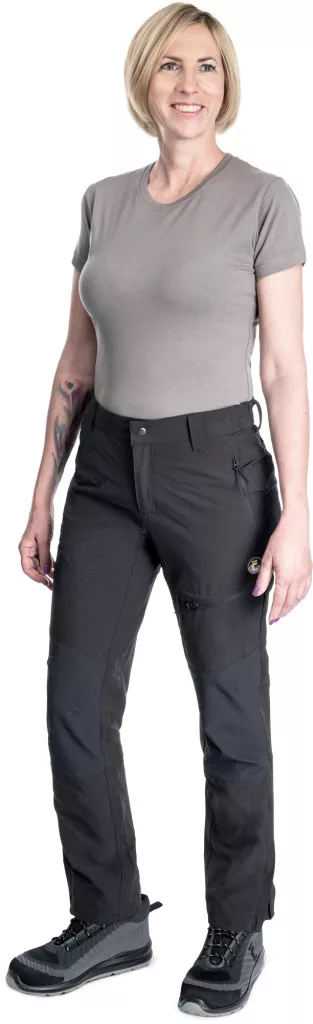 • női szabadidőnadrág könnyű, rugalmas anyagból • megerősített térd- és hátsó rész a fokozott tartósság érdekében • rugalmas derékrész • 2 oldalzseb • 1 combzseb • 1 hátsó zseb • a nadrágszár alja cipzárral bővíthető