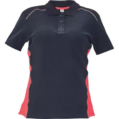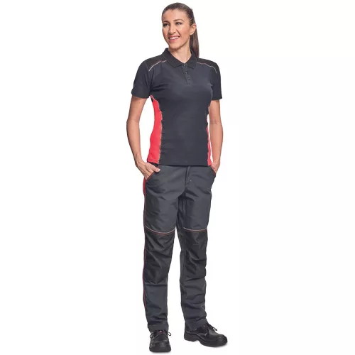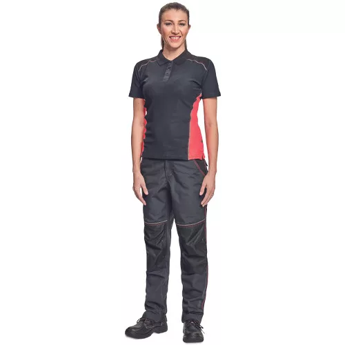 • póló fésült pamutból nőies szabással • kontrasztos fekete vállrész fényvisszavető paszpollal • dekoratív oldalbetétek és tűzések HI-VIS színben