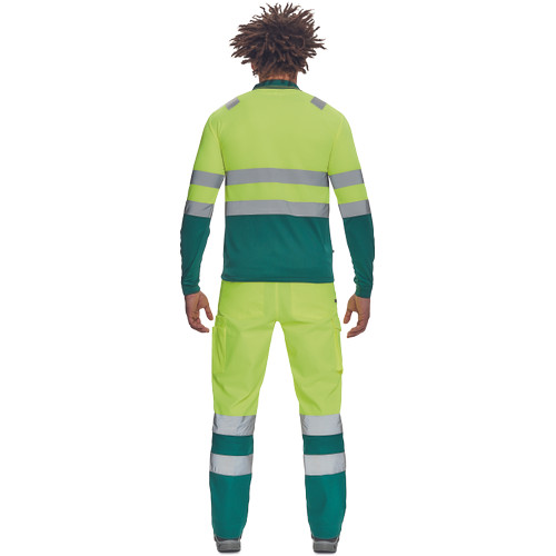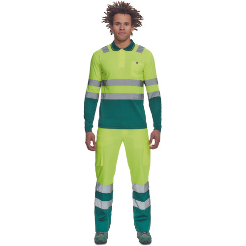 • Hi-Vis hosszú ujjú póló 5 cm széles fényvisszavető csíkokkal • 3 gombbal záródó nyakkivágás • rugalmas mandzsetta • kontrasztos színű gallér • 1 mellzseb