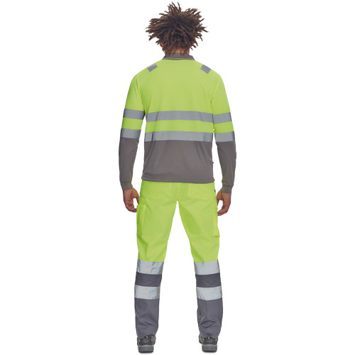 • Hi-Vis hosszú ujjú póló 5 cm széles fényvisszavető csíkokkal • 3 gombbal záródó nyakkivágás • rugalmas mandzsetta • kontrasztos színű gallér • 1 mellzseb