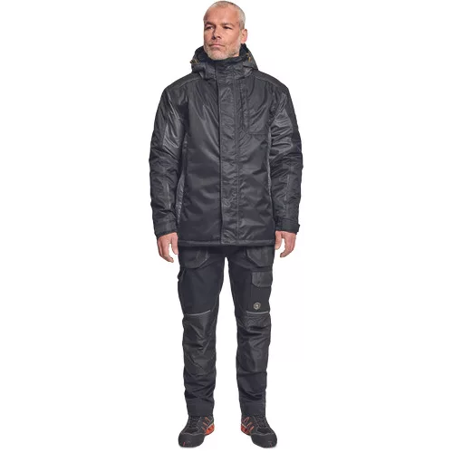 Dinamikus vonalvezetésű, modern szabású férfi télikabát, levehető, polár kapucnival és meleg gallérral. A kabát hátul hosszított, ennek és az ujjakon, valamint a derékrészen elhelyezett rugalmas passzénak köszönhetően kiválóan illeszkedik és melegen tart. A kapucni húzózsinórral állítható. Két cipzáras belső- és oldalzsebbel, valamint egy mellzsebbel, a cipzárakon tépőzáras borítással készül. Színben harmonizáló fényvisszavető elemekkel egészítettük ki. A kabát hátrésze hímezhető. Anyaga: 100% poliészter/PU, 120g/m2. Bélés: 100% poliészter, 160 g/m2. Vízoszlop 3000 mm. Páraáteresztő képesség: 3000 g/ m2 / 24 óra