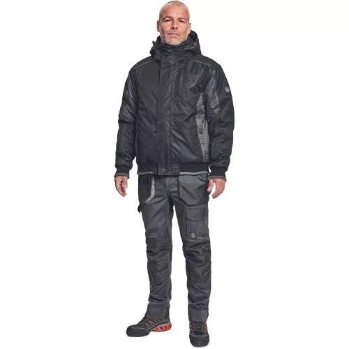 Dinamikus vonalvezetésű, modern szabású férfi pilóta dzseki, levehető, polár kapucnival és meleg gallérral. A kabát hátul hosszított, ennek és az ujjakon, valamint a derékrészen elhelyezett elasztikus passzénak köszönhetően kiválóan illeszkedik és melegen tart. A kapucni húzózsinórral állítható. Két cipzáras belső- és oldalzsebbel, valamint mellzsebbel, a cipzárakon tépőzáras borítással készül. Színben harmonizáló fényvisszavető elemekkel egészítettük ki. A kabát hátrésze hímezhető. Anyaga: 100% poliészter/PU, 120 g/m2. Bélés: 100% poliészter, 160 g/m2. Vízoszlop 3000 mm. páraáteresztő képesség: 3000 g/m2/ 24 óra