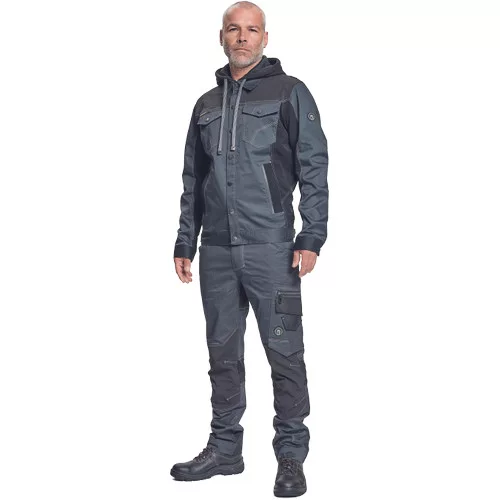 • munkakabát innovatív, pamutgazdag, rugalmas TRIFIBETEX® és TRIFIBETEXPRO® anyagokból CORDURA® betétekkel • levehető kapucnival • fém gombok • állítható mandzsetták • 2 oldalzseb • 2 gombos mellzseb • fényvisszavető csíkok