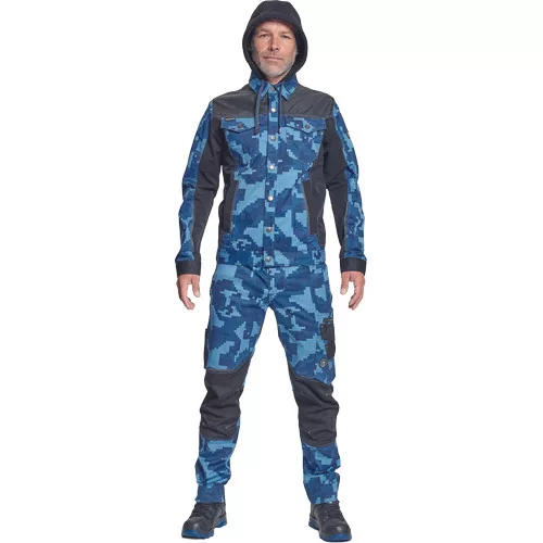 • férfi munkakabát férfi munkakabát innovatív, pamutgazdag, rugalmas TRIFIBETEX, illetve TRIFIBETEXPRO® anyagokból CORDURA® betétekkel, digitális terepmintával, fém gombok, állítható ujjvégek, 2 oldalsó zseb, 2 cipzáras mellkasi zseb, fényvisszavető csíkok