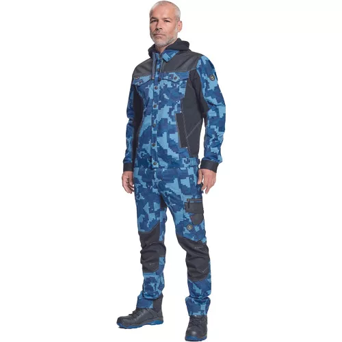 • férfi munkakabát férfi munkakabát innovatív, pamutgazdag, rugalmas TRIFIBETEX, illetve TRIFIBETEXPRO® anyagokból CORDURA® betétekkel, digitális terepmintával, fém gombok, állítható ujjvégek, 2 oldalsó zseb, 2 cipzáras mellkasi zseb, fényvisszavető csíkok