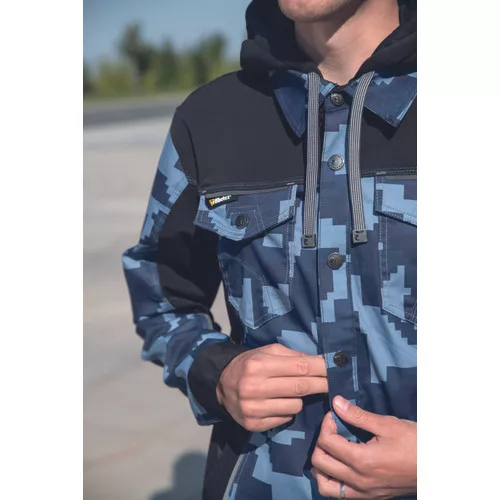 • férfi munkakabát férfi munkakabát innovatív, pamutgazdag, rugalmas TRIFIBETEX, illetve TRIFIBETEXPRO® anyagokból CORDURA® betétekkel, digitális terepmintával, fém gombok, állítható ujjvégek, 2 oldalsó zseb, 2 cipzáras mellkasi zseb, fényvisszavető csíkok