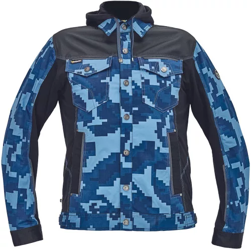 • férfi munkakabát férfi munkakabát innovatív, pamutgazdag, rugalmas TRIFIBETEX, illetve TRIFIBETEXPRO® anyagokból CORDURA® betétekkel, digitális terepmintával, fém gombok, állítható ujjvégek, 2 oldalsó zseb, 2 cipzáras mellkasi zseb, fényvisszavető csíkok