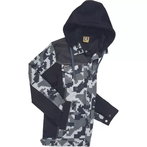 • férfi munkakabát férfi munkakabát innovatív, pamutgazdag, rugalmas TRIFIBETEX, illetve TRIFIBETEXPRO® anyagokból CORDURA® betétekkel, digitális terepmintával, fém gombok, állítható ujjvégek, 2 oldalsó zseb, 2 cipzáras mellkasi zseb, fényvisszavető csíkok