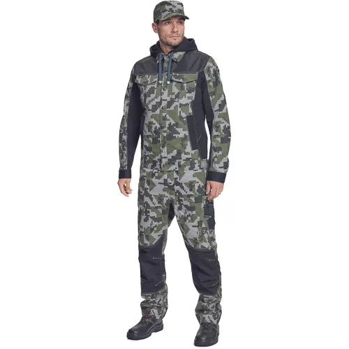 • férfi munkakabát férfi munkakabát innovatív, pamutgazdag, rugalmas TRIFIBETEX, illetve TRIFIBETEXPRO® anyagokból CORDURA® betétekkel, digitális terepmintával, fém gombok, állítható ujjvégek, 2 oldalsó zseb, 2 cipzáras mellkasi zseb, fényvisszavető csíkok