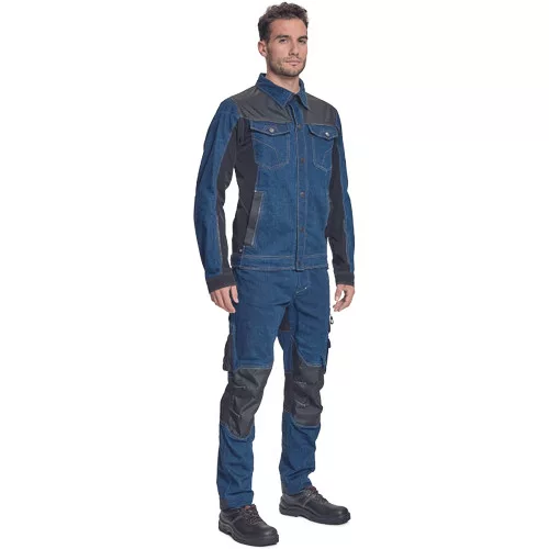 • férfi munkakabát rugalmas farmer és TRIFIBETEXPRO® kombinációjából • CORDURA® betétek a kényes részeken • 2 oldalzseb • 2 mellzseb