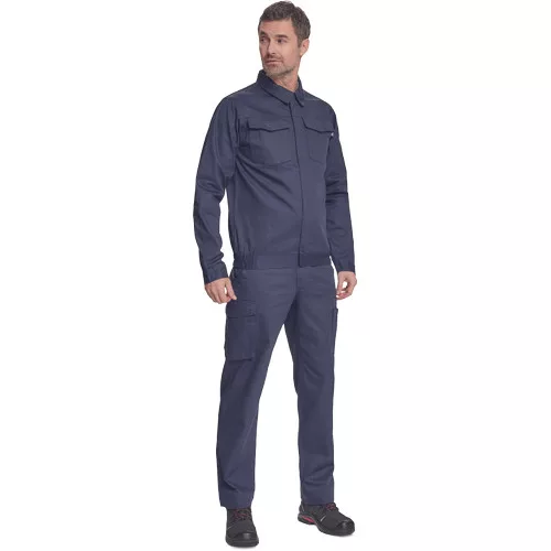 • férfi munkakabát • cipzáras, tépőzáras hajtókával • 2 nagy hajtókás mellkasi zseb • rugalmas oldalsó betétek a kabát alján • tépőzáras mandzsetta • 65% PES/35% pamut, 195 g/m2