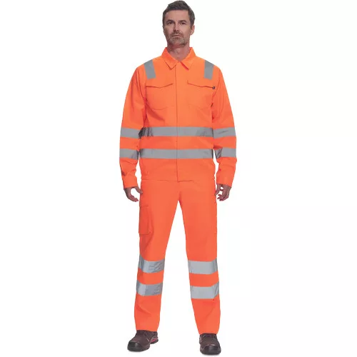 • férfi Hi-Vis kabát 5 cm széles fényvisszavető csíkokkal • cipzáras, tépőzáras hajtókával • 2 nagy hajtókás mellkasi zseb • rugalmas oldalsó betétek a kabát alján • tépőzáras mandzsetta