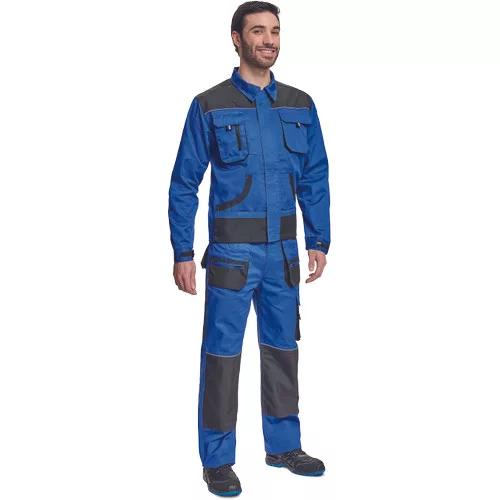 • férfi munkakabát • cipzáras kivitelben, tépőzáras hajtókával • 2 tépőzáras mellzseb • 2 multifunkcionális oldalzseb • OXFORD poliészter erősítés könyökrészeken és a vállakon • 100% pamut, 235g/m2
