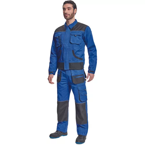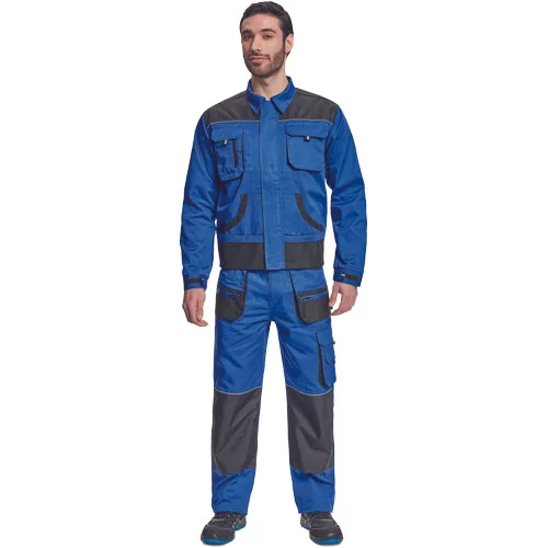 • férfi munkakabát • cipzáras kivitelben, tépőzáras hajtókával • 2 tépőzáras mellzseb • 2 multifunkcionális oldalzseb • OXFORD poliészter erősítés könyökrészeken és a vállakon • 100% pamut, 235g/m2