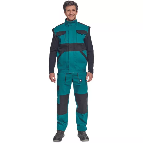 • férfi cipzáras munkakabát levehető ujjakkal • 2 oldalzseb, 2 mellzseb • megerősítés a váll- és könyökrészeken • rugalmas mandzsetta és derékpánt • anyag: 100% pamut, anyagvastagság: 260 g/m2