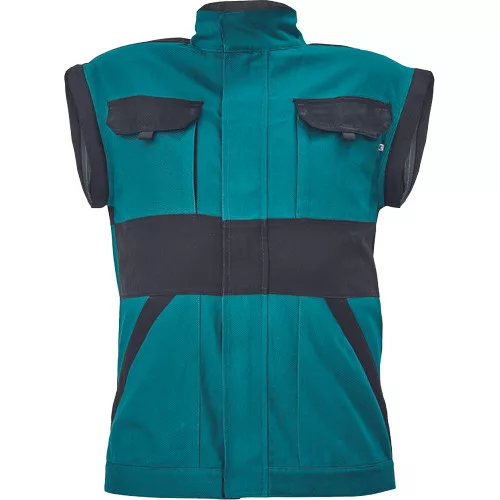 • férfi cipzáras munkakabát levehető ujjakkal • 2 oldalzseb, 2 mellzseb • megerősítés a váll- és könyökrészeken • rugalmas mandzsetta és derékpánt • anyag: 100% pamut, anyagvastagság: 260 g/m2