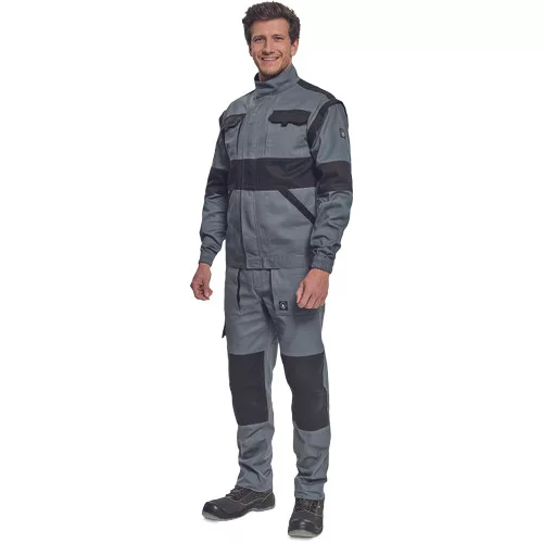 • férfi cipzáras munkakabát levehető ujjakkal • 2 oldalzseb, 2 mellzseb • megerősítés a váll- és könyökrészeken • rugalmas mandzsetta és derékpánt • anyag: 100% pamut, anyagvastagság: 260 g/m2