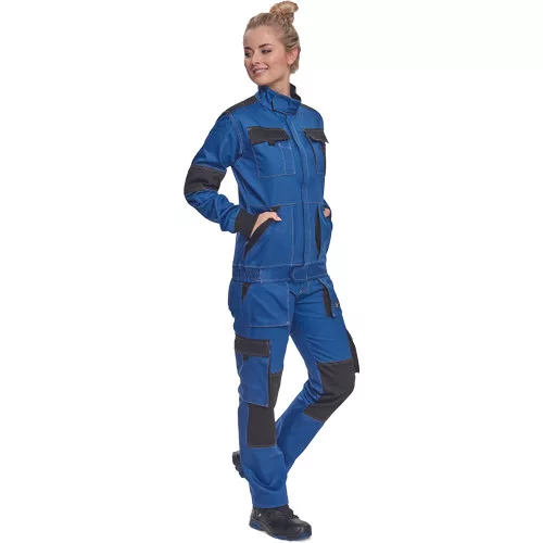 • női cipzáras munkakabát könnyű pamutszövetből • 2 első zseb • 2 dupla mellzseb zsebfedővel • 1 zseb a bal ujjon • megerősítés a váll-és könyökrészeken • rugalmas mandzsetta és derékszegély • anyag: 100% pamut, anyagvastagság: 220 g/m2