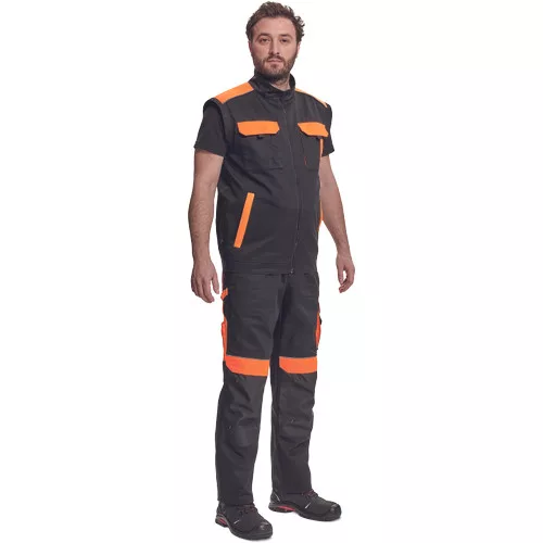 • férfi cipzáras munkakabát levehető ujjakkal • 2 oldalzseb • 2 mellzseb • Oxford 600D erősítés a váll-és könyökrészeken • rugalmas mandzsetta és derékszegély • fényvisszavető szegélyek