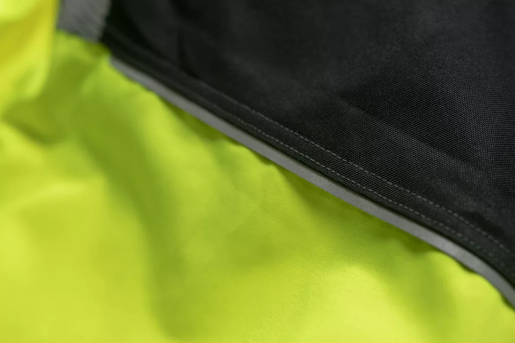 • férfi jólláthatósági munkakabát • cipzárral záródó kialakítás tépőzáras hajtókával, Oxford 600D megerősítő rátétekkel a váll-és könyökrészeken • 2-2 oldal - és mellzsebbel, 1 e-Secure anyagból készült telefontartó zsebbel • fényvisszavető részletekkel • 5 cm -es fényvisszavető csíkokkal a derékrészen, az ujjakon és a vállakon