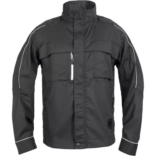 • modern szabású munkakabát formázott ujjvarrással • bővített hátrész, megerősítés a könyökrészen, cipzárralzáródó kialakítás patentos hajtókával • 2 zsebfedős mellzseb, cipzáras Napóleon zseb jobb oldalon • 2 belső zseb • patenttal szűkíthető mandzsetták • fényvisszavető részletek
