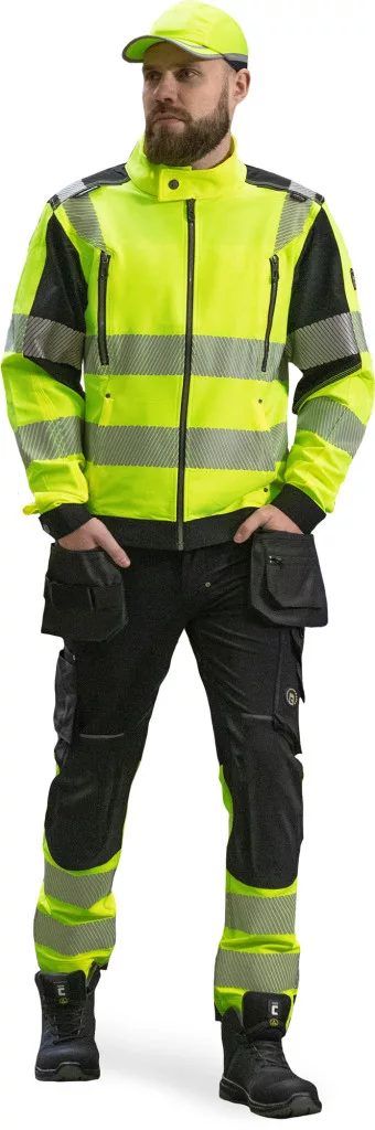 • férfi HI-VIS kabát állógallérral és cipzárral • rugalmas, innovatív TRIFIBETEX VIS® anyag • 2 oldalzseb • 2 cipzáras mellzseb • szegmentált, nyomtatott 7 cm széles fényvisszavető csíkok a törzsön, ujjakon és a vállrészen • patenttal állítható mandzsetta