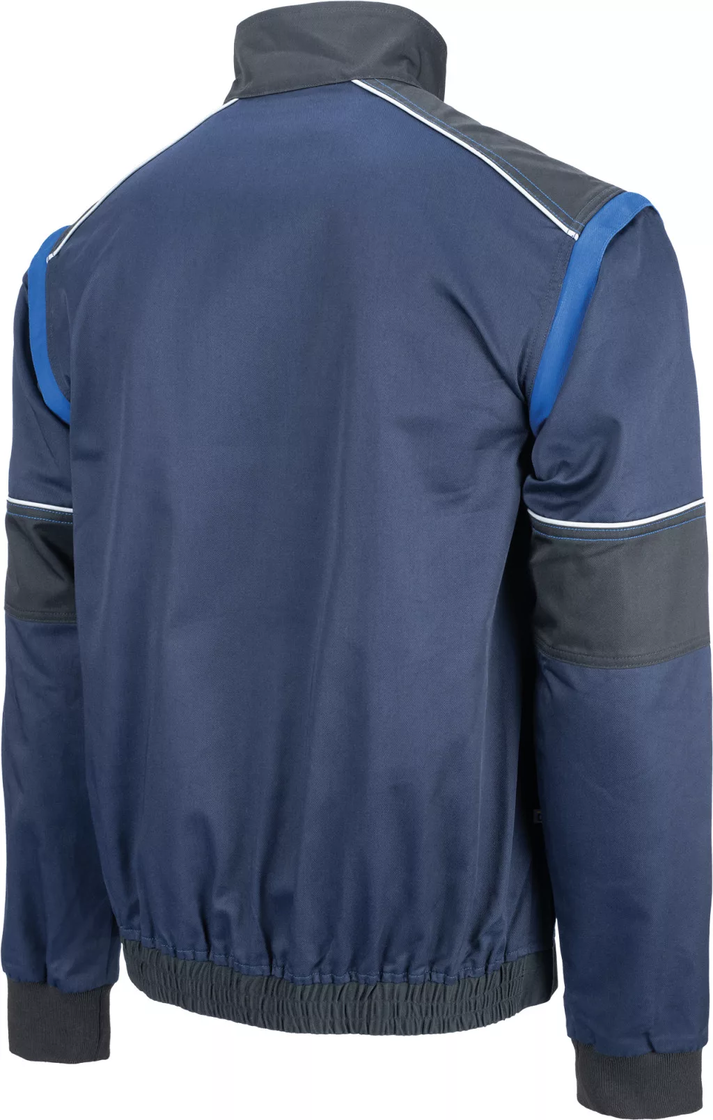 • férfi munkakabát cipzárral, takart patentes borítással • 2 oldalzseb • 2 tépőzáras mellzseb • megerősített vállrészek • levehető ujjak rugalmas mandzsettákkal • rugalmas derékpánt • fényvisszavető részletek