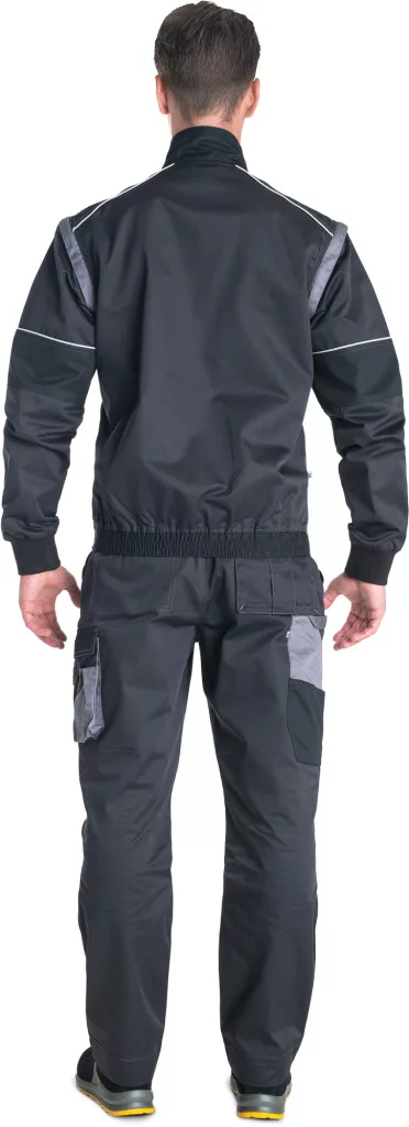 • férfi munkakabát cipzárral, takart patentes borítással • 2 oldalzseb • 2 tépőzáras mellzseb • megerősített vállrészek • levehető ujjak rugalmas mandzsettákkal • rugalmas derékpánt • fényvisszavető részletek