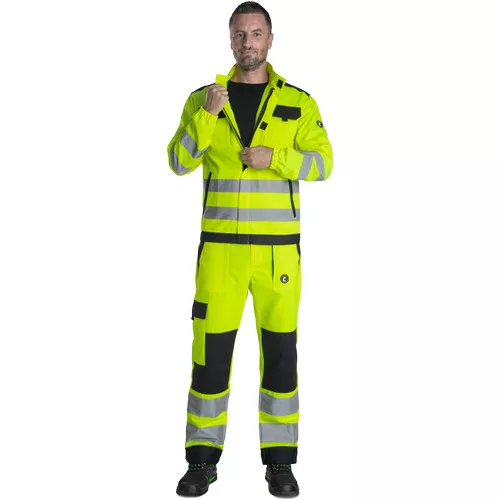 • Unisex HI-VIS munkakabát cipzárral, takarólappal ellátva • 2 oldalzseb • 2 mellzseb tépőzárral