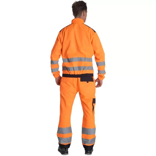 • 2 bevarrt, 5 cm széles fényvisszavető csík az oldalak mentén és az alsó ujjrészeken • megerősített vállrészek • rugalmas mandzsetták és elasztikus derékrész.